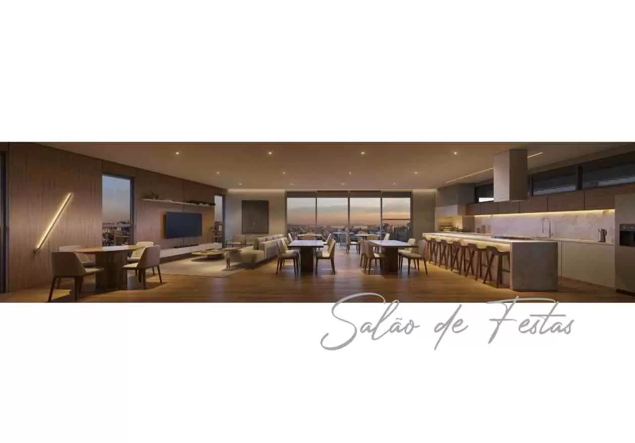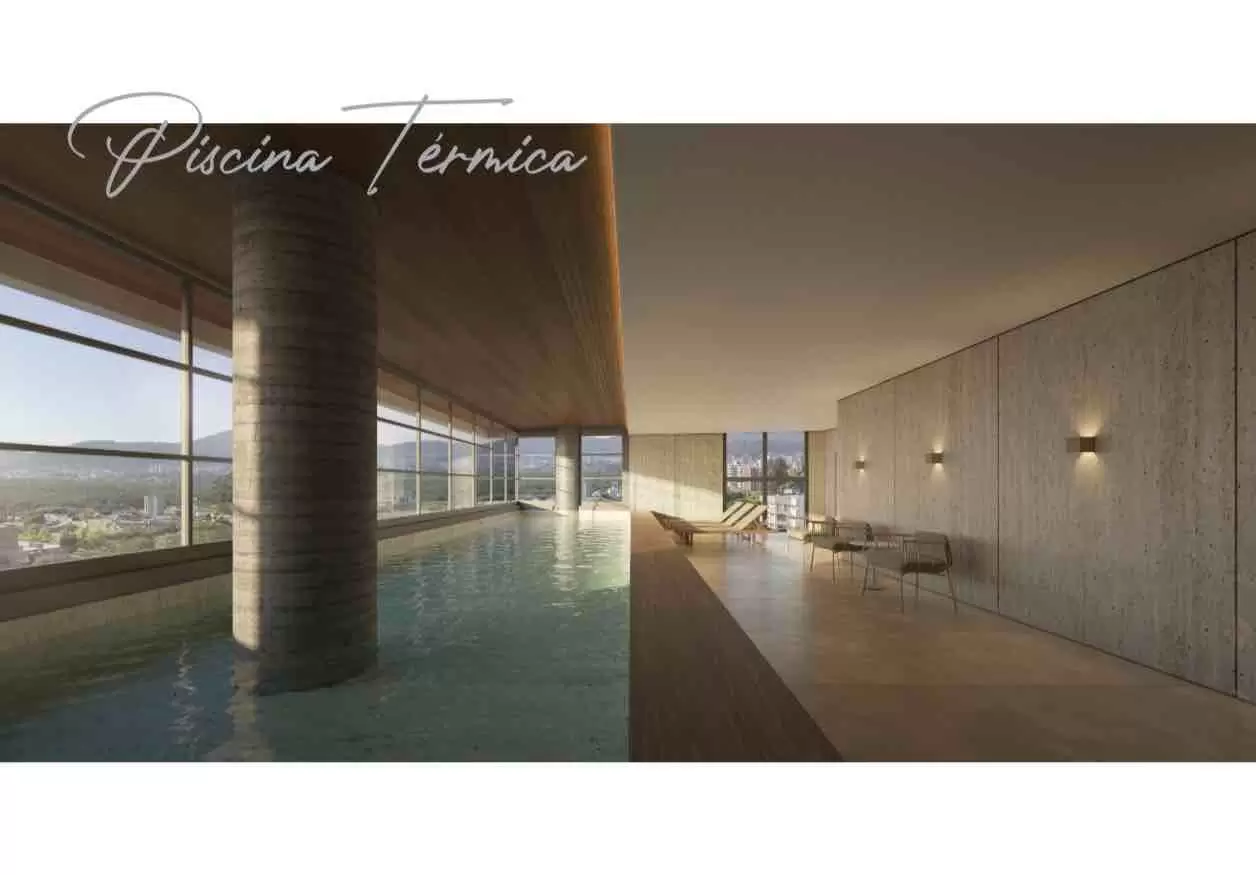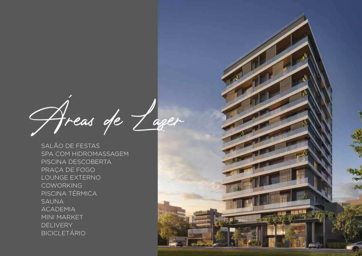 Infraestrutura completa com salão de festas, spa com hidromassagem, piscina externa e piscina térmica, sauna, academia, lounge externo, praça de fogo, coworking, mini market, espaço delivery e bicicletário;