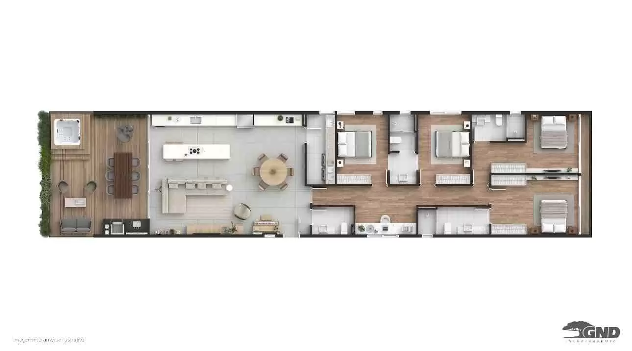 Amplo living integrado;